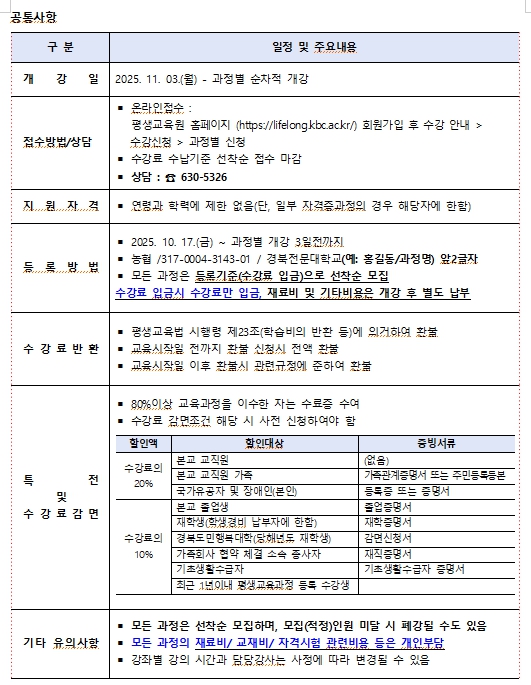1. 교육기간: 2025.11.04(화) ~ 11.14.(금) 매주(화, 금)