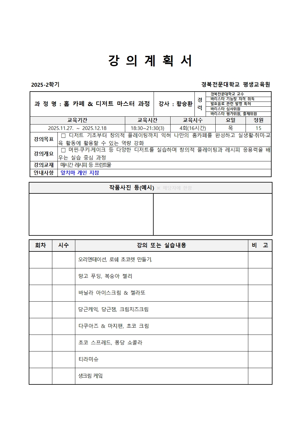 1. 교육기간: 2025.11.27(목)~12.18.(목)/ 매주(목) 저녁 18:30~21:30(3H)