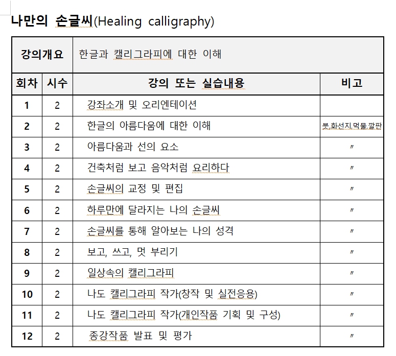 [평생교육원] 나만의 손글씨(Healing calligraphy)